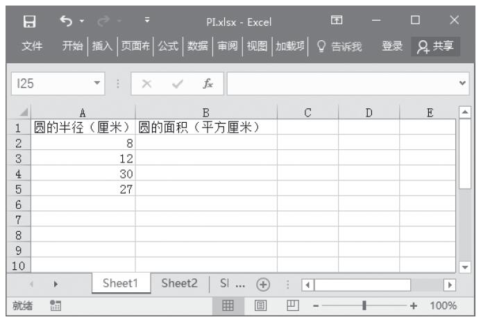 【典型案例】已知圆的半径,求圆的面积。本例的原始数据如图13-51所示。