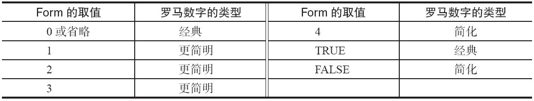 表13-1 参数form的取值及罗马数字的类型