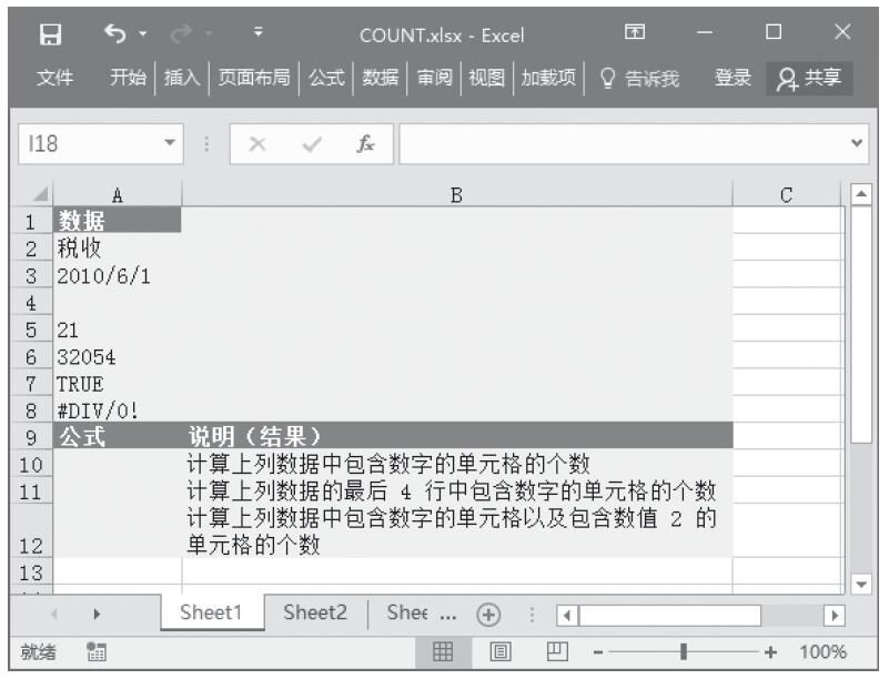 Excel 应用COUNT函数计算参数列表中数字的个数