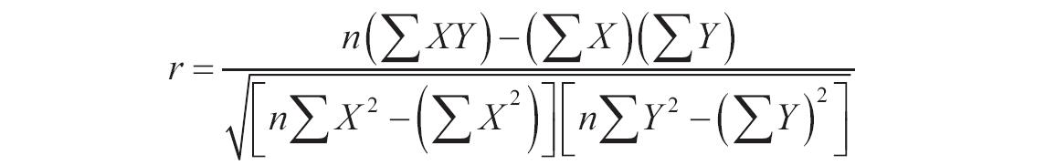 参数可以是数字或者是包含数字的名称、数组或引用。逻辑值和直接键入到参数列表中代表数字的文本被计算在内。如果数组或引用参数包含文本、逻辑值或空白单元格,则这些值将被忽略,但包含零值的单元格将计算在内。如果参数为错误值或为不能转换成数字的文本,将会导致错误;如果known_y’s和known_x’s为空或其数据点个数不同,函数RSQ返回错误值“#N/A”;如果known_y’s和known_x’s函数只包含1个数据点,则RSQ函数返回错误值“#DIV/0!”。Pearson乘积矩相关系数r的计算公式如下。