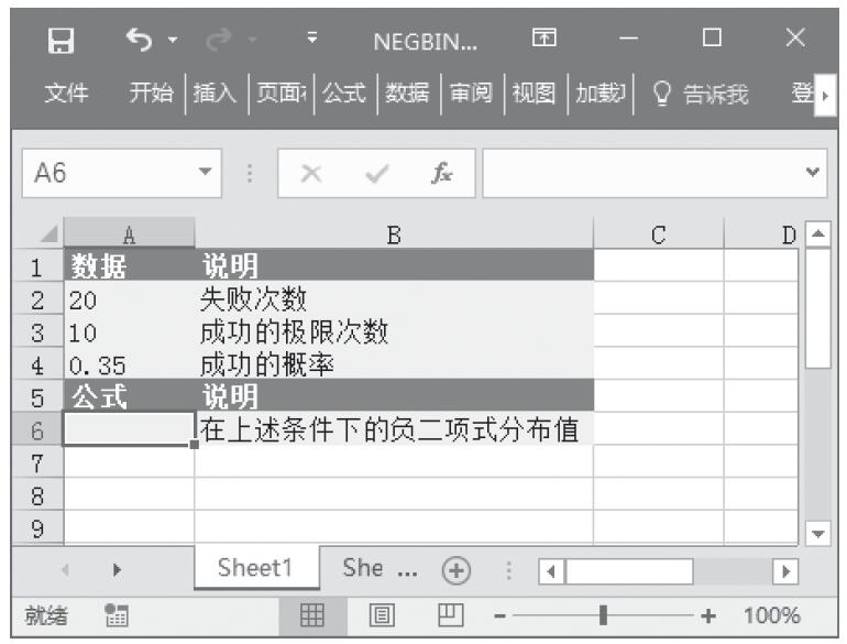步骤1:打开例子工作簿“NEGBINOMDIST.xlsx”。