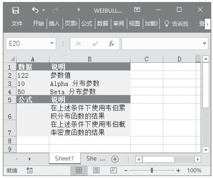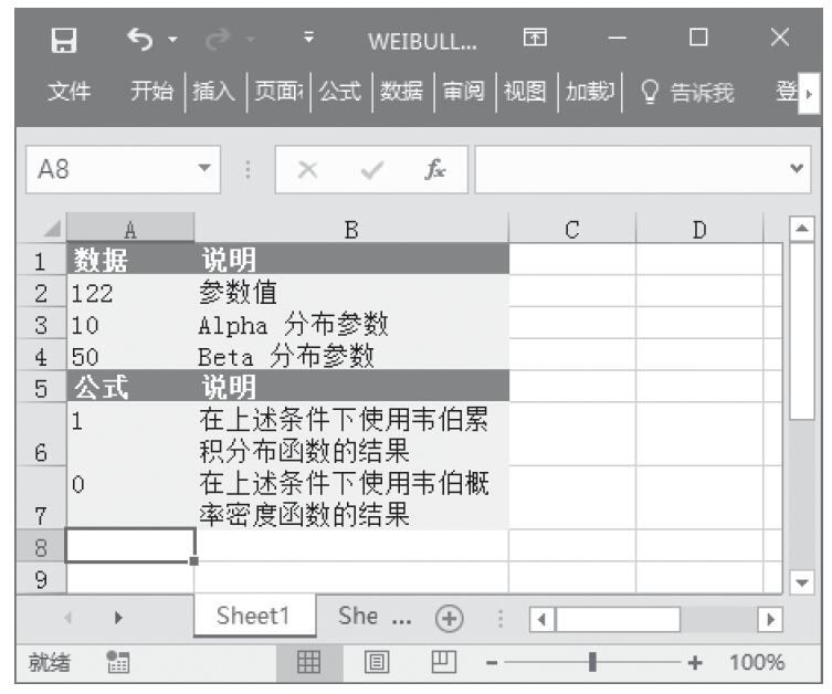 步骤1:打开例子工作簿“WEIBULL.xlsx”。