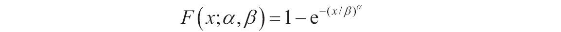 如果x、alpha或beta为非数值型,函数WEIBULL返回错误值“#VALUE!”;如果x<0,函数WEIBULL返回错误值“#NUM!”;如果alpha≤0或beta≤0,函数WEIBULL返回错误值“#NUM!”。韦伯累积分布函数的计算公式如下。