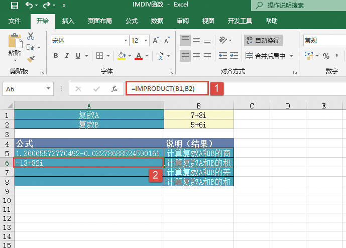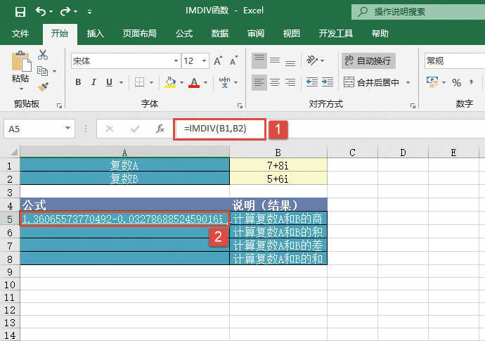 其中,inumber1参数为复数分子(被除数),inumber2参数为复数分母(除数)。
