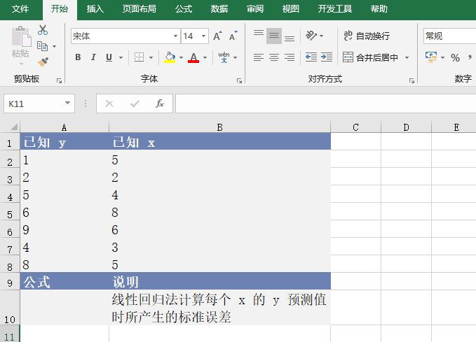 且其中x和y是样本平均值AVERAGE(known_x’s)和AVERAGE(known_y’s),n是样本的大小。