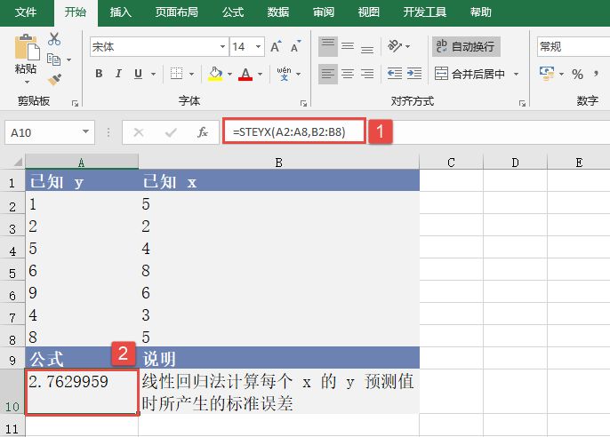 STEYX函数用于计算通过线性回归法计算每个x的y预测值时所产生的标准误差。标准误差用来度量根据单个x变量计算出的y预测值的误差量。STEYX函数的语法如下: