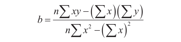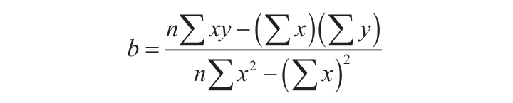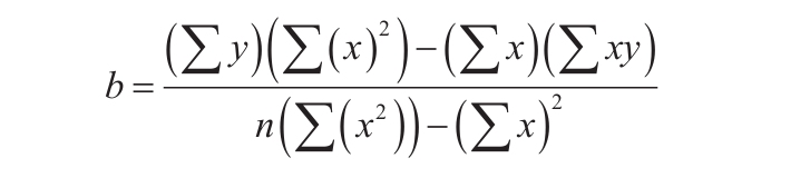 其中x和y是样本平均值,例如x=AVERAGE(knownx’s)和y=AVERAGE(known_y’s)。