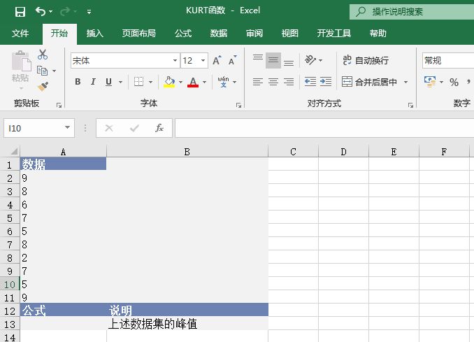 打开“KURT函数.xlsx”工作簿,切换至“Sheet1”工作表,本例中的原始数据如图18-78所示。该工作表中记录了一组数据,要求计算出上述数据集的峰值。具体的操作步骤如下。