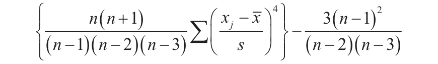参数可以是数字或者包含数字的名称、数组或引用。逻辑值和直接键入参数列表中代表数字的文本被计算在内。如果数组或引用参数包含文本、逻辑值或空白单元格,则这些值将被忽略;但包含零值的单元格将计算在内。如果参数为错误值或为不能转换为数字的文本,将会导致错误。如果数据点少于4个,或样本标准偏差等于0,函数KURT返回错误值“#DIV/0!”。峰值的计算公式如下: