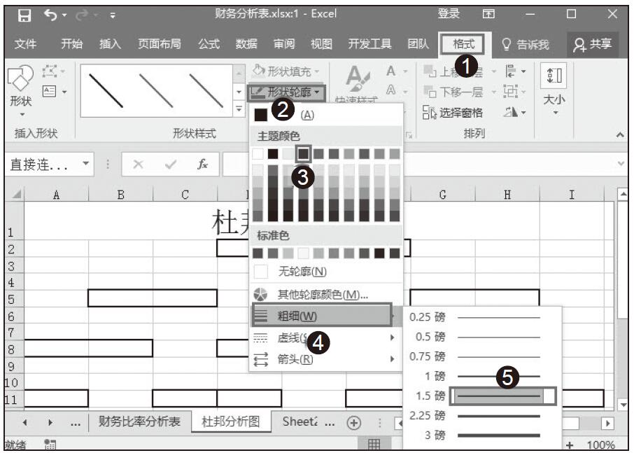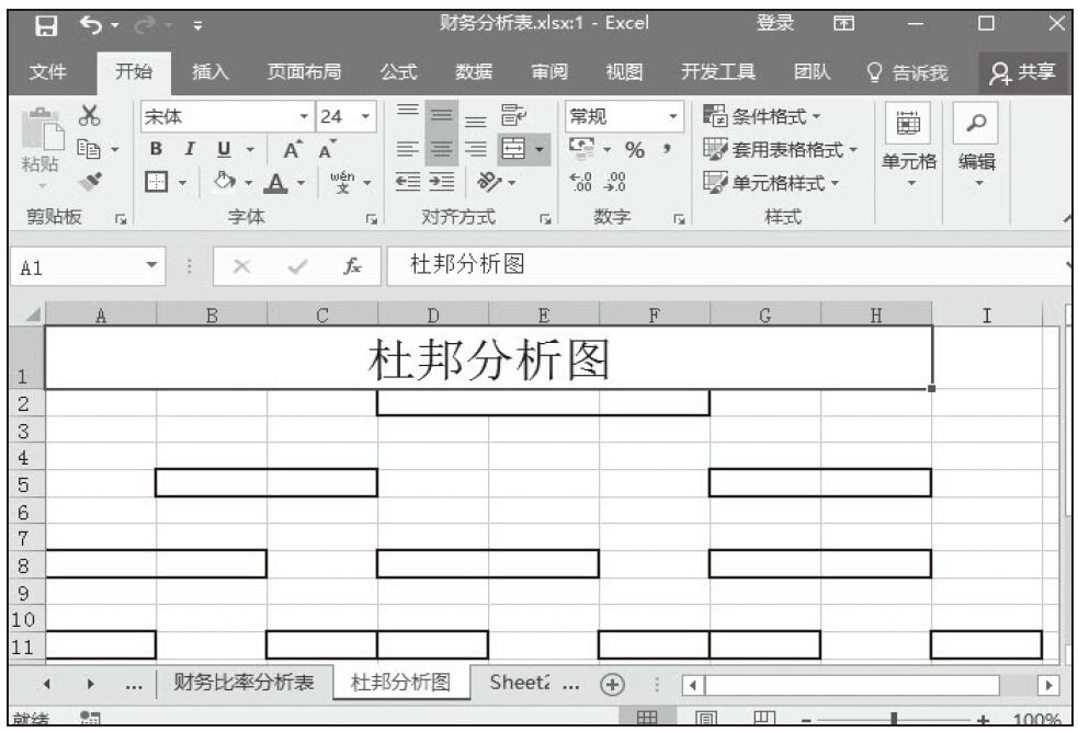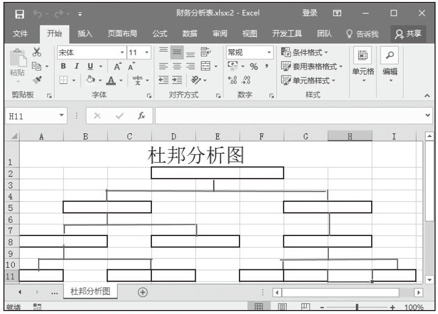 完成杜邦分析图后,我们就可以在图格里面填写我们之前计算的数据了,或者直接引用公司的原有的数据。