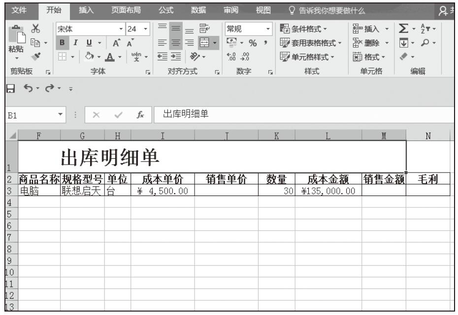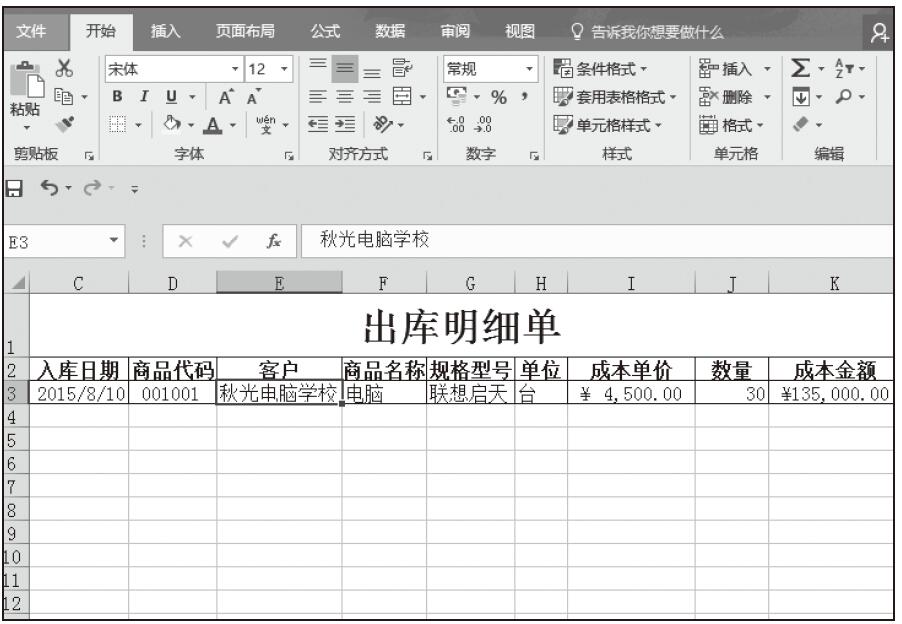 步骤02:根据“出库单”添加出库记录,随着记录的增加,记录行会自动添加边框,如图5-89所示。