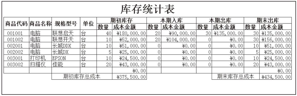 库存统计是对商品的出入库情况进行的综合统计,它包括期初库存、本期入库、本期出库和期末库存等信息。