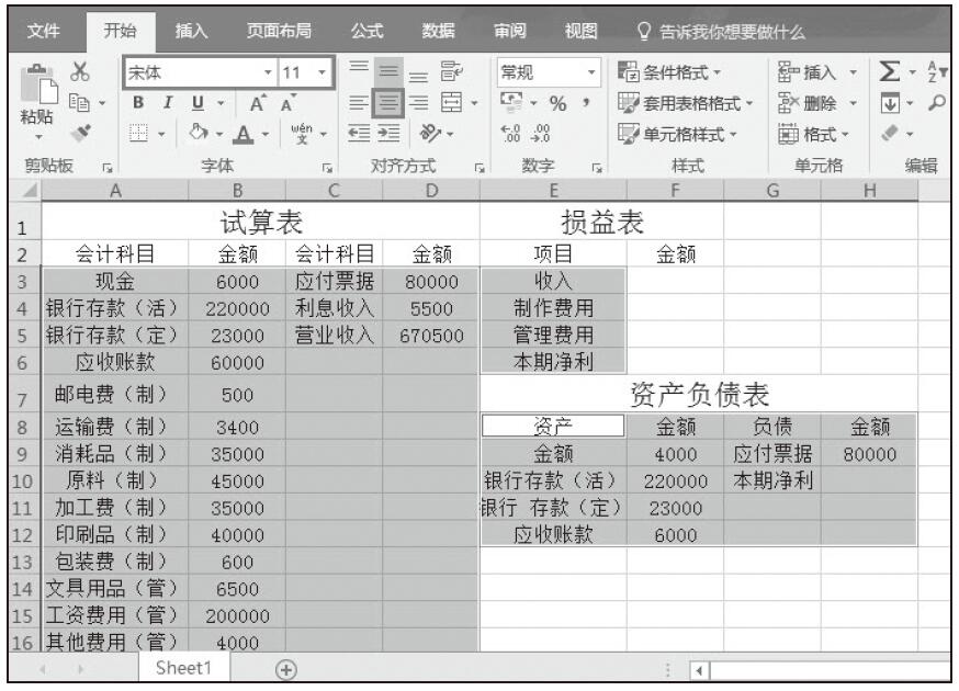 图2-142 新建表格并输入上年数据