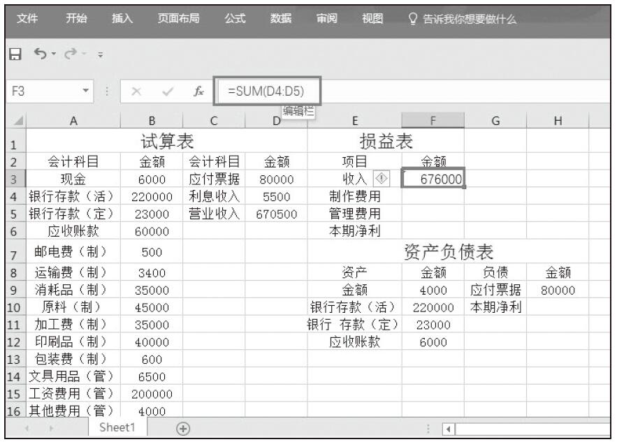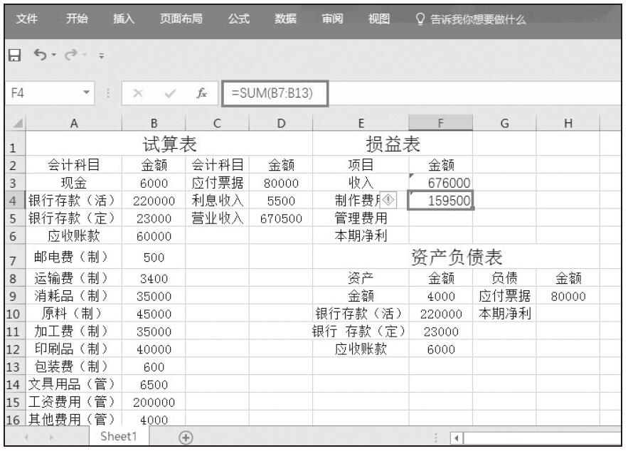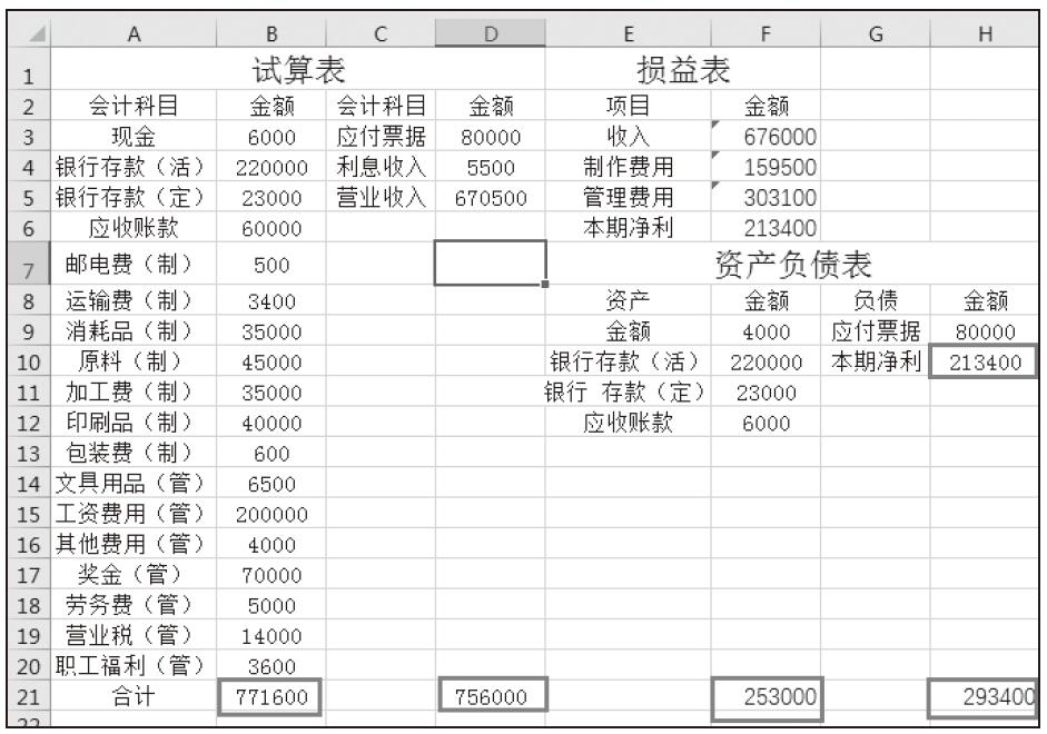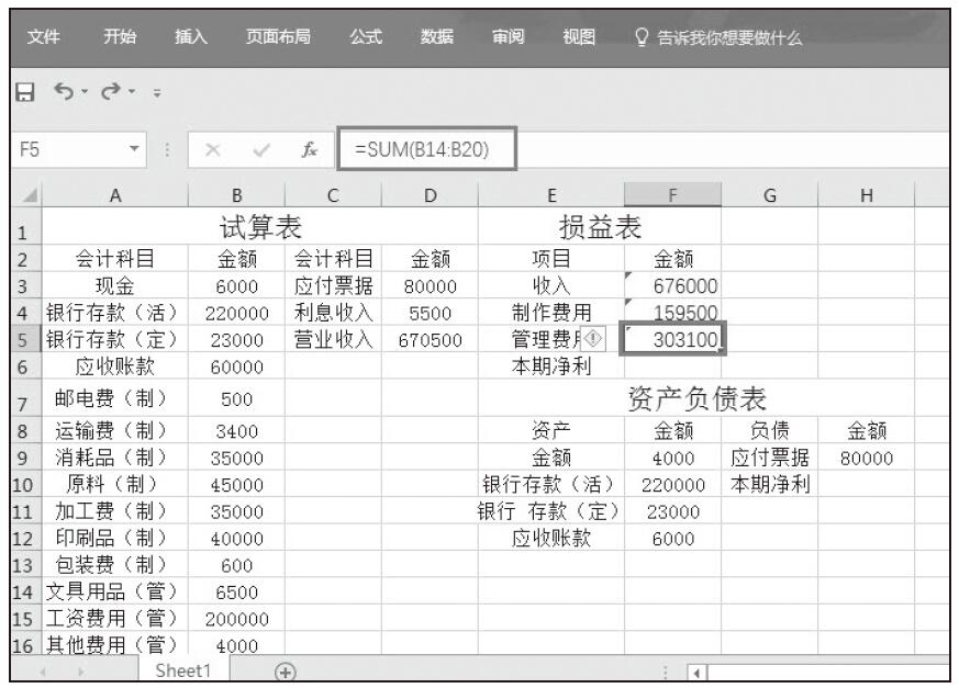 注意:第7行为合计,指的是求和项,用SUM函数得出,下文含有合计项的可直接计算得出,不再重复过程。