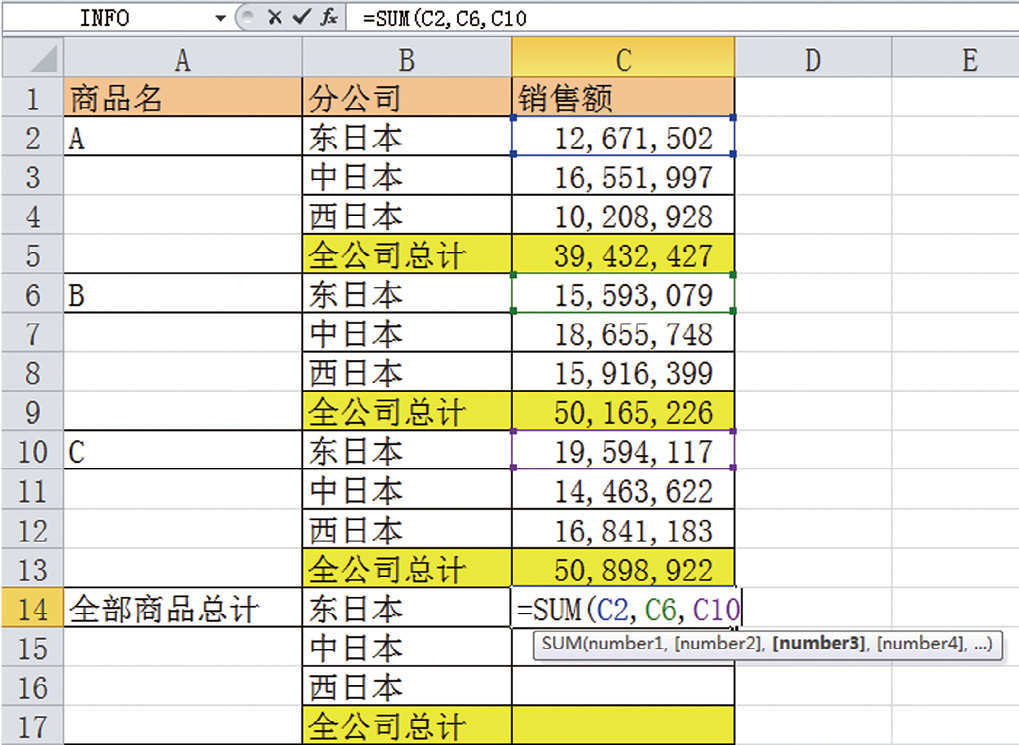 用星号(*)连接单元格的话,公式则如下所示。很明显,前面的方法要轻松得多。