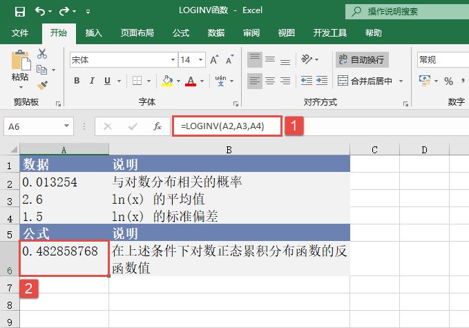 其中参数x为参数值。mean为ln(x)的平均值。standard_dev为ln(x)的标准偏差。