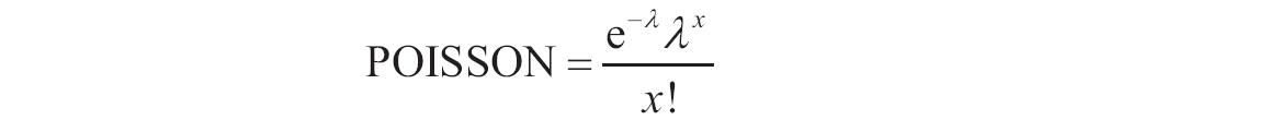 如果x不为整数,将被截尾取整。如果x或mean为非数值型,函数POISSON返回错误值“#VALUE!”;如果x<0,函数POISSON返回错误值“#NUM!”;如果mean<0,函数POISSON返回错误值“#NUM!”。函数POISSON的计算公式如下。