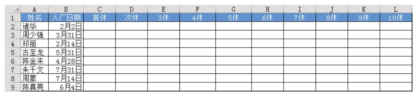 在图4.185中有每个职工的入厂日期,要求写出所有职工的近10次休假申请日期,是否有办法快捷生成日期,而不用手工逐个填入?