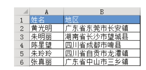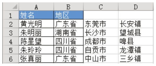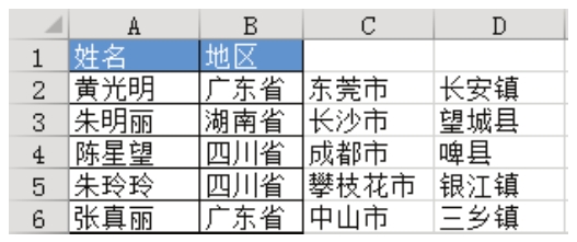 图 4.39 中地区名称的上下级之间采用了顿号作为分隔符,现要求将地区名称按级别分别存放在3个单元格中,即省、市、县名称各占一个单元格,是否有办法一次性完成呢?