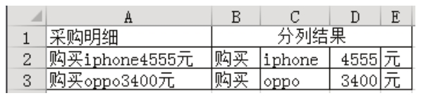 4.直接单击“完成”按钮,Excel会关闭对话框,同时对选区执行分列。图4.42是分列结果。