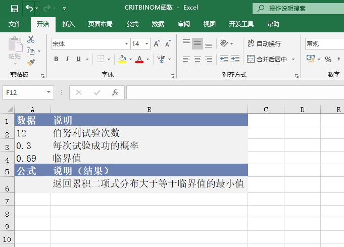 步骤1:打开例子工作簿“CRITBINOM.xlsx”。