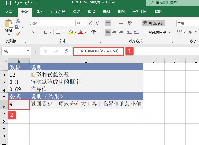 CRITBINOM函数用于计算使累积二项式分布大于或等于临界值的最小值。此函数可以用于质量检验。例如,使用函数CRITBINOM来决定最多允许出现多少个有缺陷的部件,才可以保证当整个产品在离开装配线时检验合格。CRITBINOM函数的语法如下。