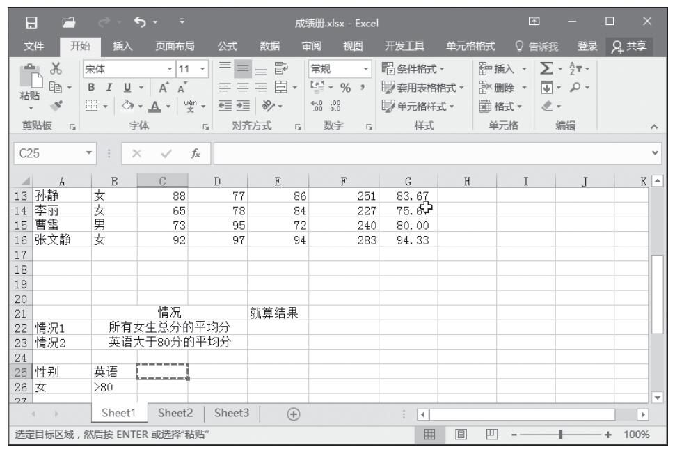 步骤1:根据上面提出的查询条件,设置的计算表格和条件区域如图14-3所示。