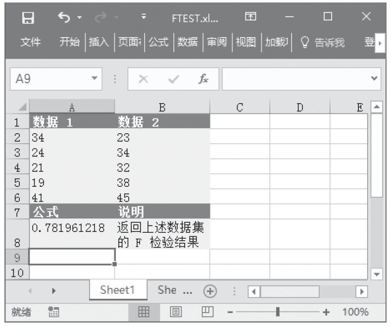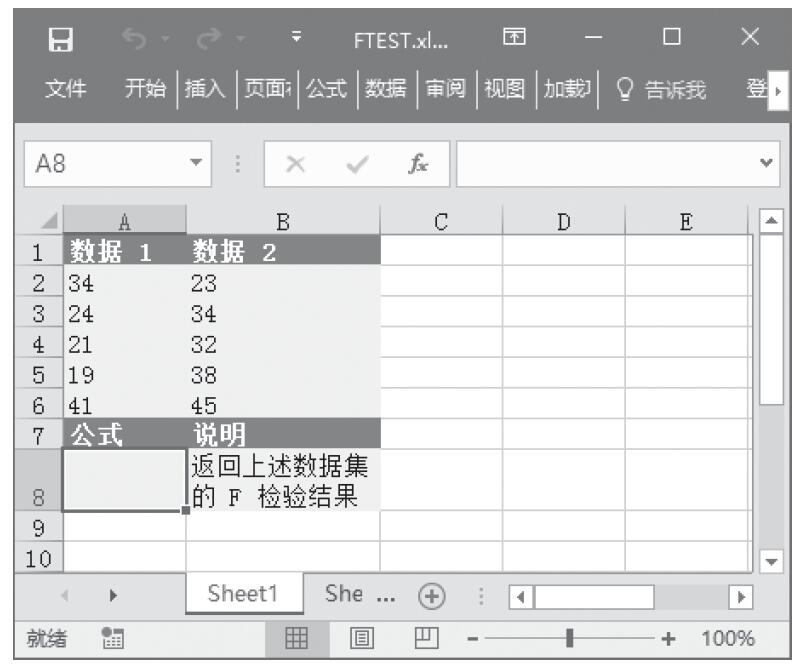 步骤1:打开例子工作簿“FTEST.xlsx”。