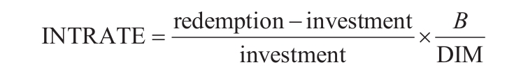 INTRATE(settlement,maturity,investment,redemption,basis)