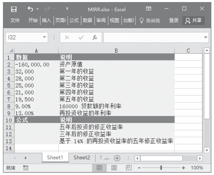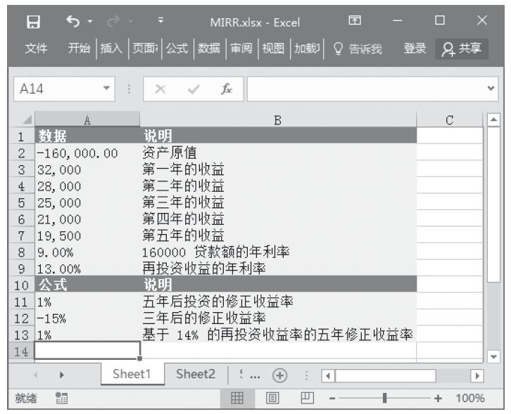 步骤1:打开例子工作簿“MIRR.xlsx”。