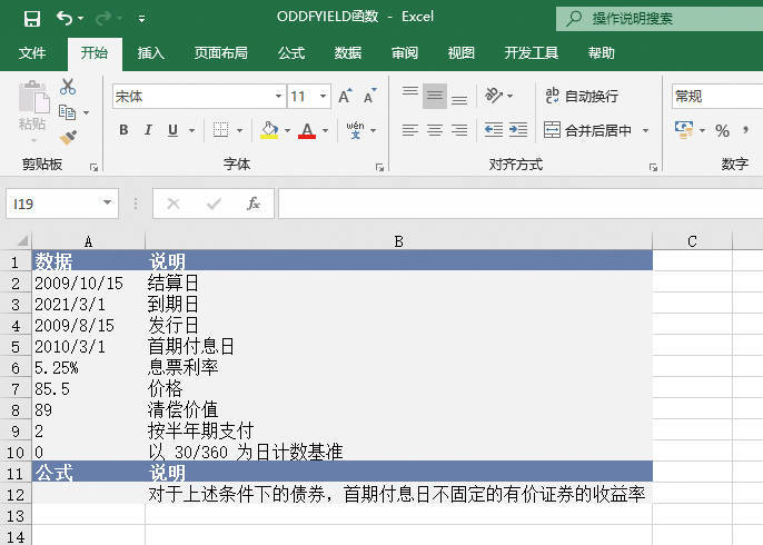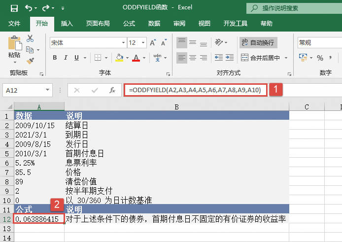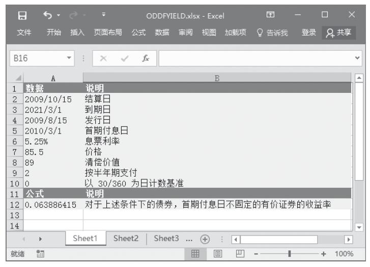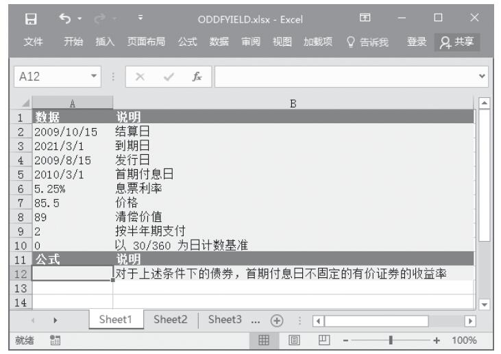 步骤1:打开例子工作簿“ODDFYIELD.xlsx”。