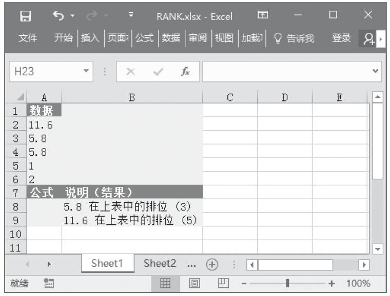 1)函数RANK对重复数的排位相同。但重复数的存在将影响后续数值的排位。例如,在一列按升序排列的整数中,如果整数10出现两次,其排位为5,则11的排位为7(没有排位为6的数值)。