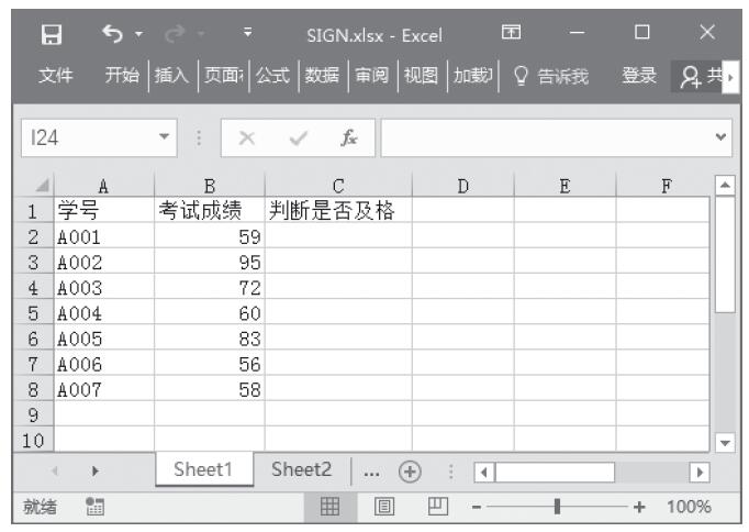 【典型案例】某班级进行了一次随堂小考,现在抽出了七位同学的成绩,判断他们的成绩是否及格。本例的原始数据如图13-70所示。