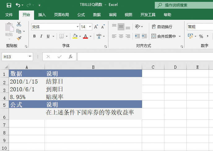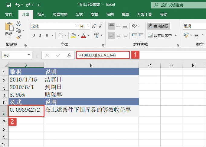 TBILLEQ函数用于计算国库券的等价证券收益率。TBILLEQ函数的语法如下。