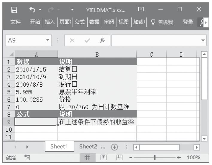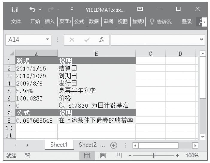 步骤1:打开例子工作簿“YIELDMAT.xlsx”。