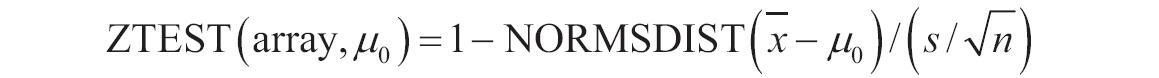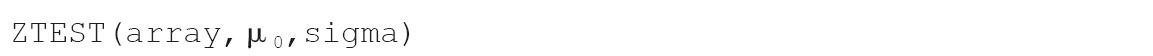 其中参数array为用来检验μ0的数组或数据区域。μ0为被检验的值。sigma为样本总体(已知)的标准偏差,如果省略,则使用样本标准偏差。